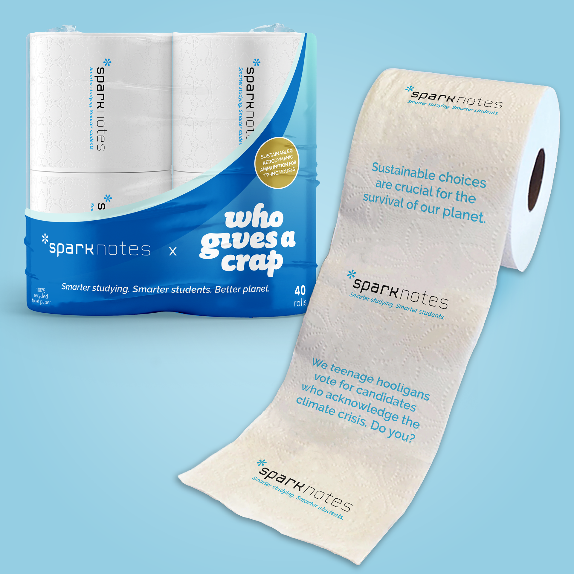 So Sparknotes will partner with Who Gives A Crap to promote eco-friendly choices.